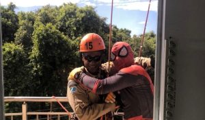 Vestidos de super-heróis, bombeiros militares visitam crianças em hospitais