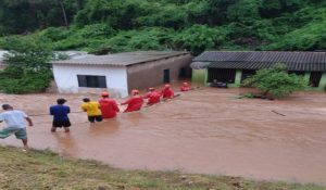 Bombeiros atuam em resgate de famílias desabrigadas pela chuva em Corumbá