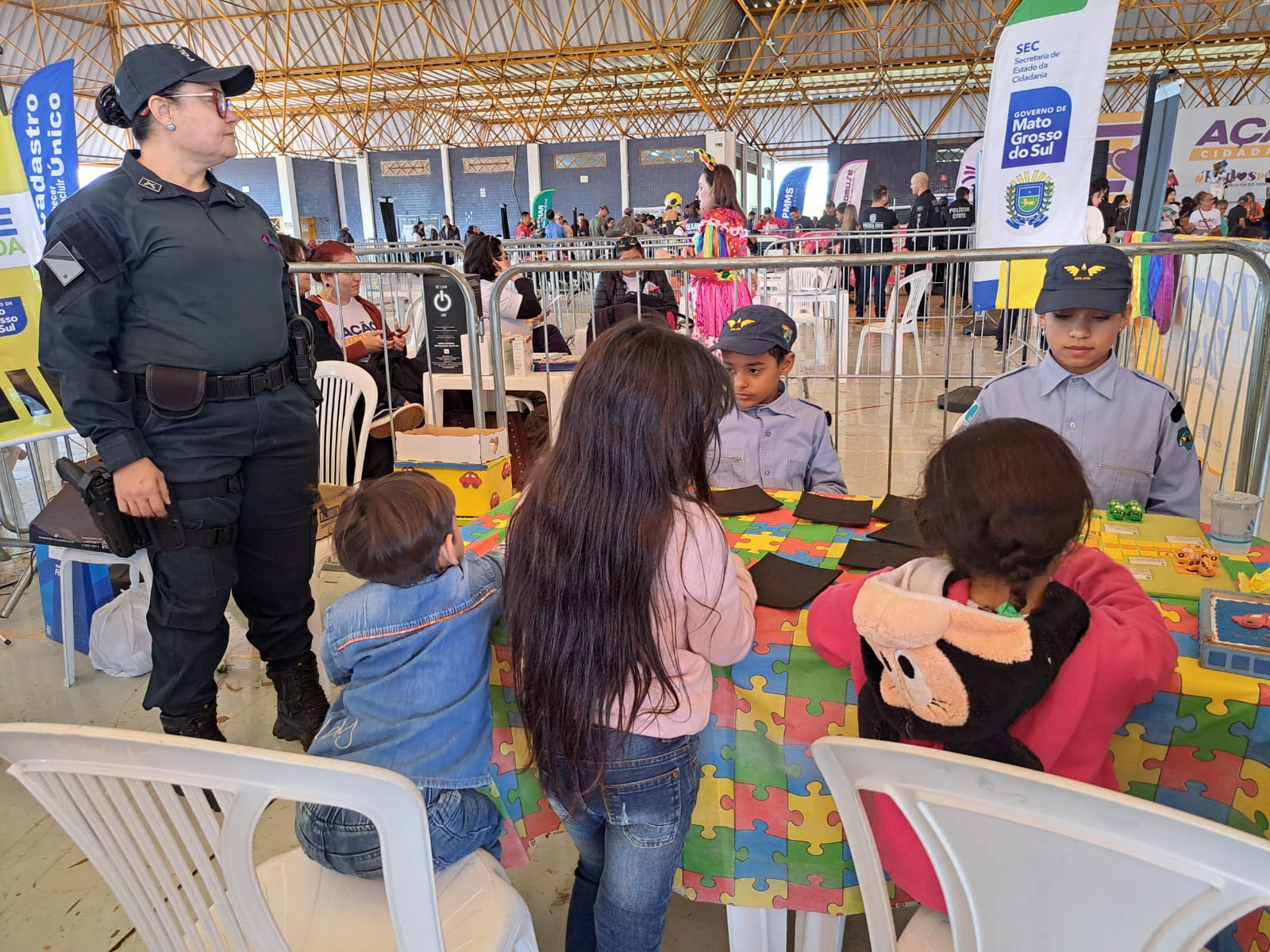 Além disso, a equipe do CETRAN/MS promoveu atividades lúdicas voltadas ao público infantil, com o apoio do CEMATRAN, utilizando brincadeiras para ensinar, de forma leve e educativa, as principais regras de trânsito e noções de cidadania, reforçando a importância da educação desde a infância.
