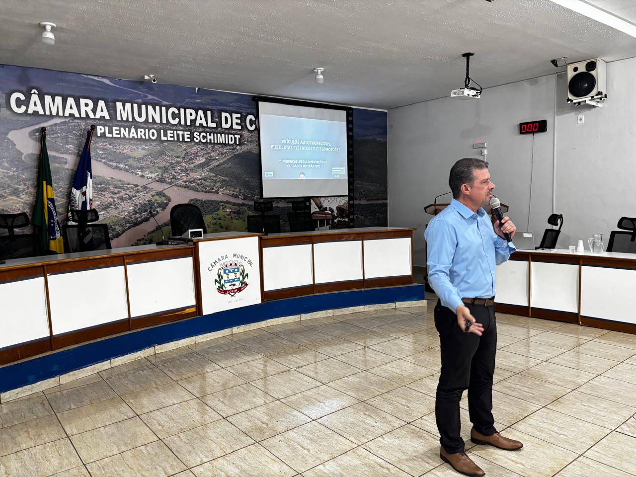 u a relevância da municipalização como ferramenta essencial para a efetiva fiscalização e organização do trânsito, abordando os instrumentos legais que orientam a criação e o funcionamento dos órgãos locais. Enfatizou ainda a necessidade de planejamento estratégico, integração com outros setores da administração pública e investimento em educação para o trânsito, como pilares para reduzir acidentes e aprimorar a mobilidade urbana.
