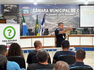 O conselheiro Luiz Carlos Duarte Magalhães trouxe o tema “Transporte Escolar: requisitos legais, fiscalização e boas práticas para a segurança dos estudantes”. Em sua palestra, apresentou as normas que regulamentam o serviço, ressaltando os critérios técnicos exigidos para veículos e condutores, além da importância da fiscalização constante para garantir a integridade dos alunos transportados. Destacou também a responsabilidade compartilhada entre poder público, profissionais da área e comunidade escolar na adoção de boas práticas que assegurem eficiência e segurança no transporte de crianças e adolescentes