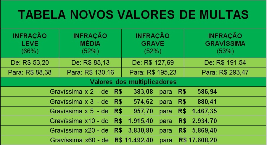 Multas que ficarão mais caras