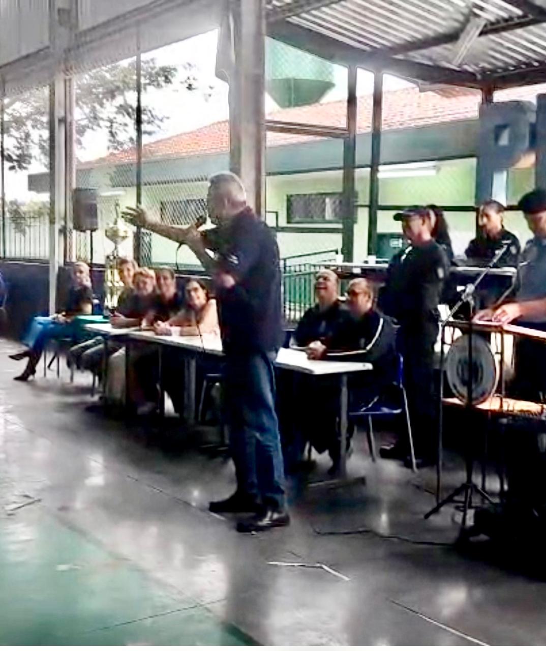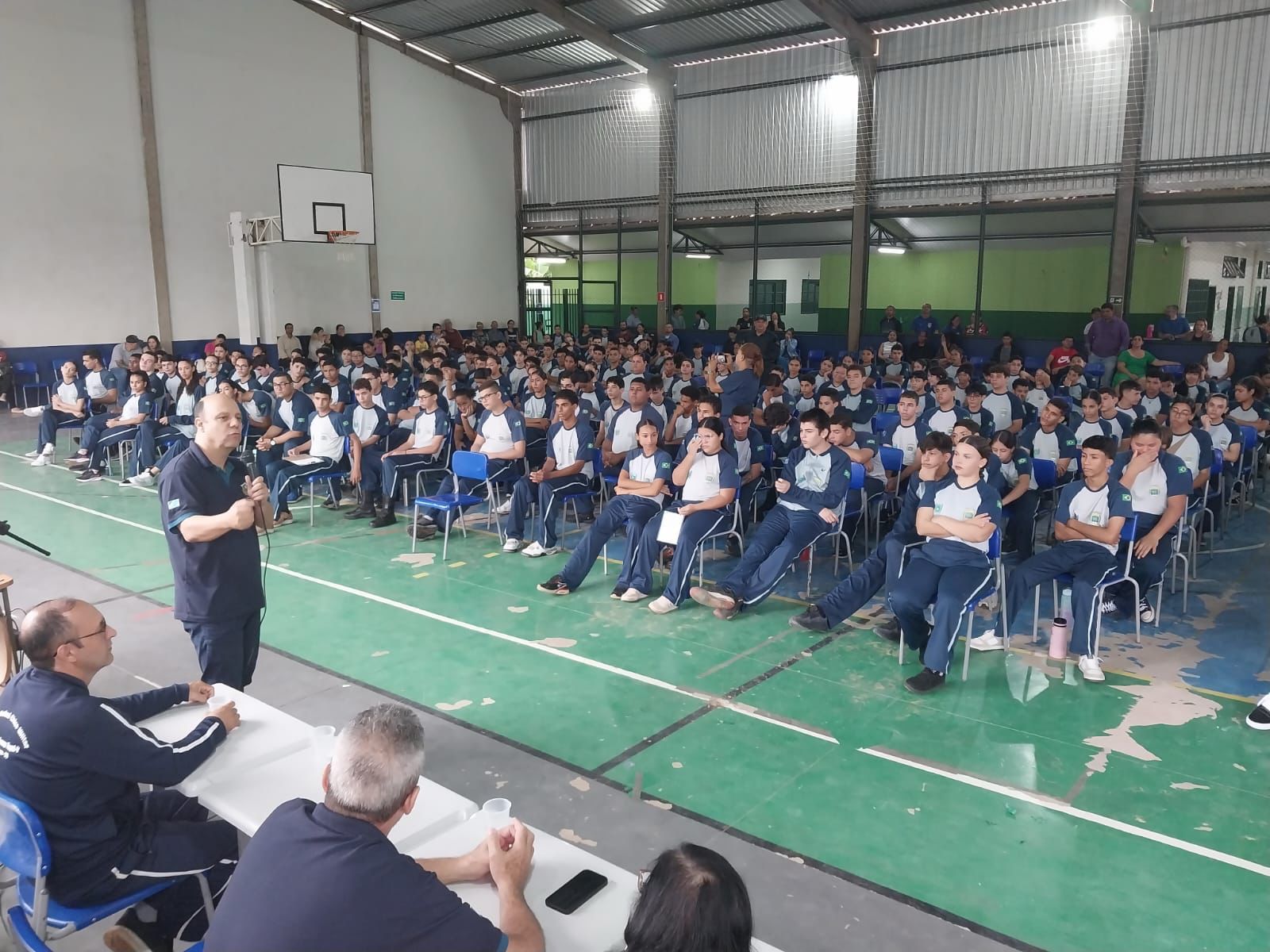 O evento contou com a presença da Coordenadoria de Polícia Comunitária Estadual, representada pelo Coronel Zelotti, pela Sargento Marlei e pelo Investigador de Polícia Judiciária Carlos Renato, reforçando o compromisso das forças de segurança com a formação ética e cívica da juventude.