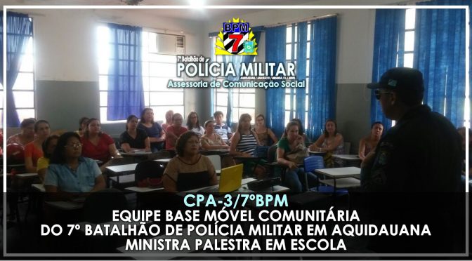 CPA-3 / 7ºBPM: Equipe Base Móvel Comunitária do 7º Batalhão de Polícia Militar em Aquidauana ministra palestra em Escola
