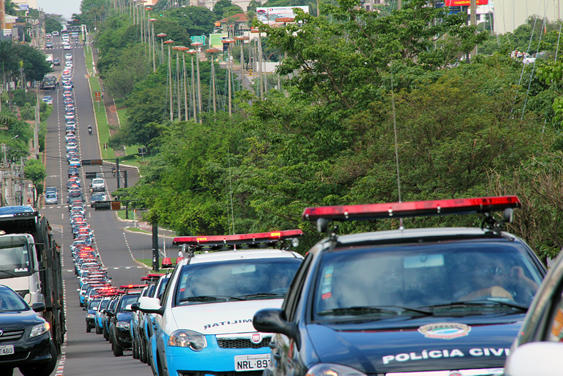 Campo Grande (MS) – O governo do Estado na manhão de ontem (01) apresentou para a população as 166 novas viaturas adquiridas para equipar as polícias de 45 municípios de Mato Grosso do Sul. As unidades saíram do Parque dos Poderes e percorreram as principais avenidas da Capital, Afonso Pena e Mato Grosso.
