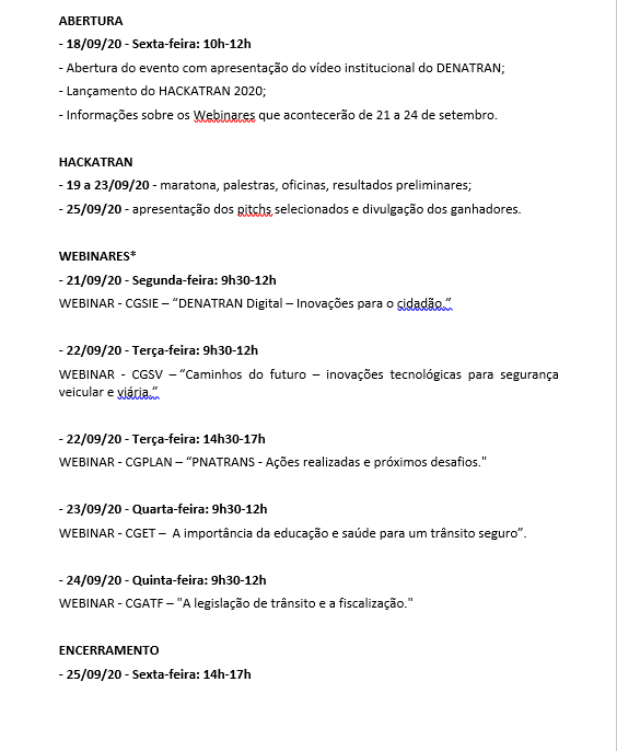 Aproveitamos ainda para apresentar a programação da Semana Nacional de Trânsito 2020, que será realizada pelo DENATRAN: