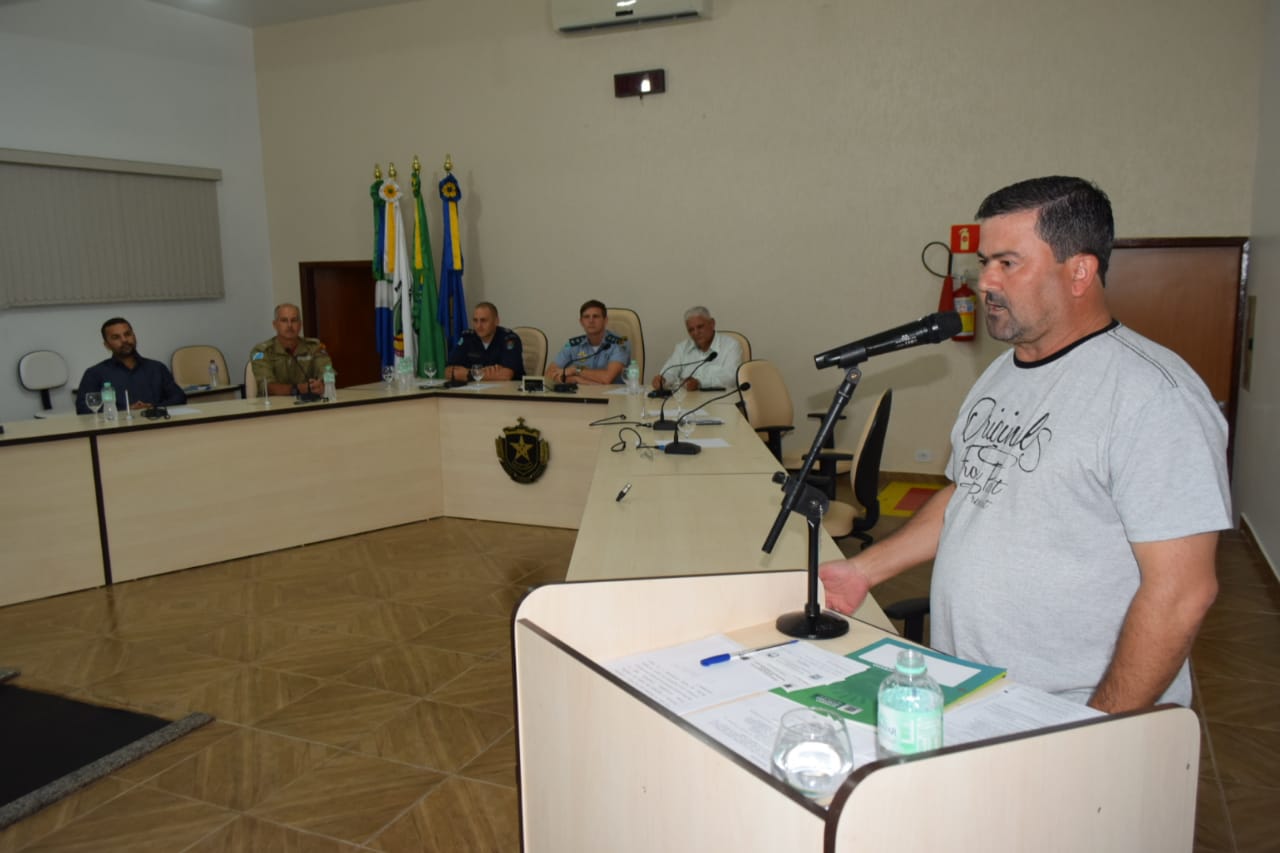 O Capitão PM Edcezar Zeilinger, da SEJUSP/CPCom, repassou informações estratégias de policiamento comunitário praticadas em outros Estados, com ênfase nas existentes em nosso Estado, ressaltando a importância da integração polícia e comunidade, no estabelecimento de estratégias de prevenção à criminalidade, juntos identificando, priorizando e buscando soluções promovendo o bem-estar da sociedade residente.