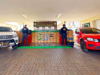 Policiais militares do Departamento de Operações de Fronteira (DOF) apreenderam, nesta sexta-feira (17), 3.820 quilos de maconha e recuperaram dois veículos, uma caminhonete Toyota Hilux e uma picape VW Saveiro, ambos com registro de furto. A ação